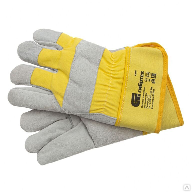 Перчатки спилковые комбинированные, усиленные, утолщенные, размер XL, Сибртех