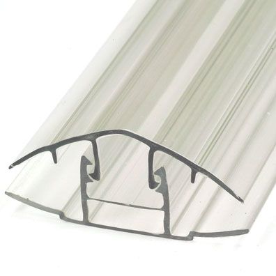 Предназначен для стыковки листов поликарбоната. Стыковочный профиль (разъемная модель) состоит из двух элементов, которые сами по себе являются цельными. Элементы используются совместно и представляют собой «крышку» и «базу», их соединение осуществляется с использованием замкового механизма. Сам профиль по форме напоминает букву «Н». Профиль имеет полости для осуществления соединения листов материала, а также камеру, которая используется для монтажа и проделывания отверстий.